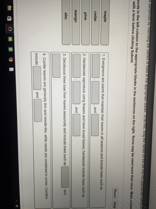 To do this drag the names on the left into the appropriate blanks in the sentences on the rightMatch the words in the left column to the appropriate blanks in the sentences. Biology 04092019 1710 nkslsj Evergreens are plants that maintain their leaves in all seasons and include trees such. Conifer leaves are generally thin and needlelike while seeds are contained in cones.